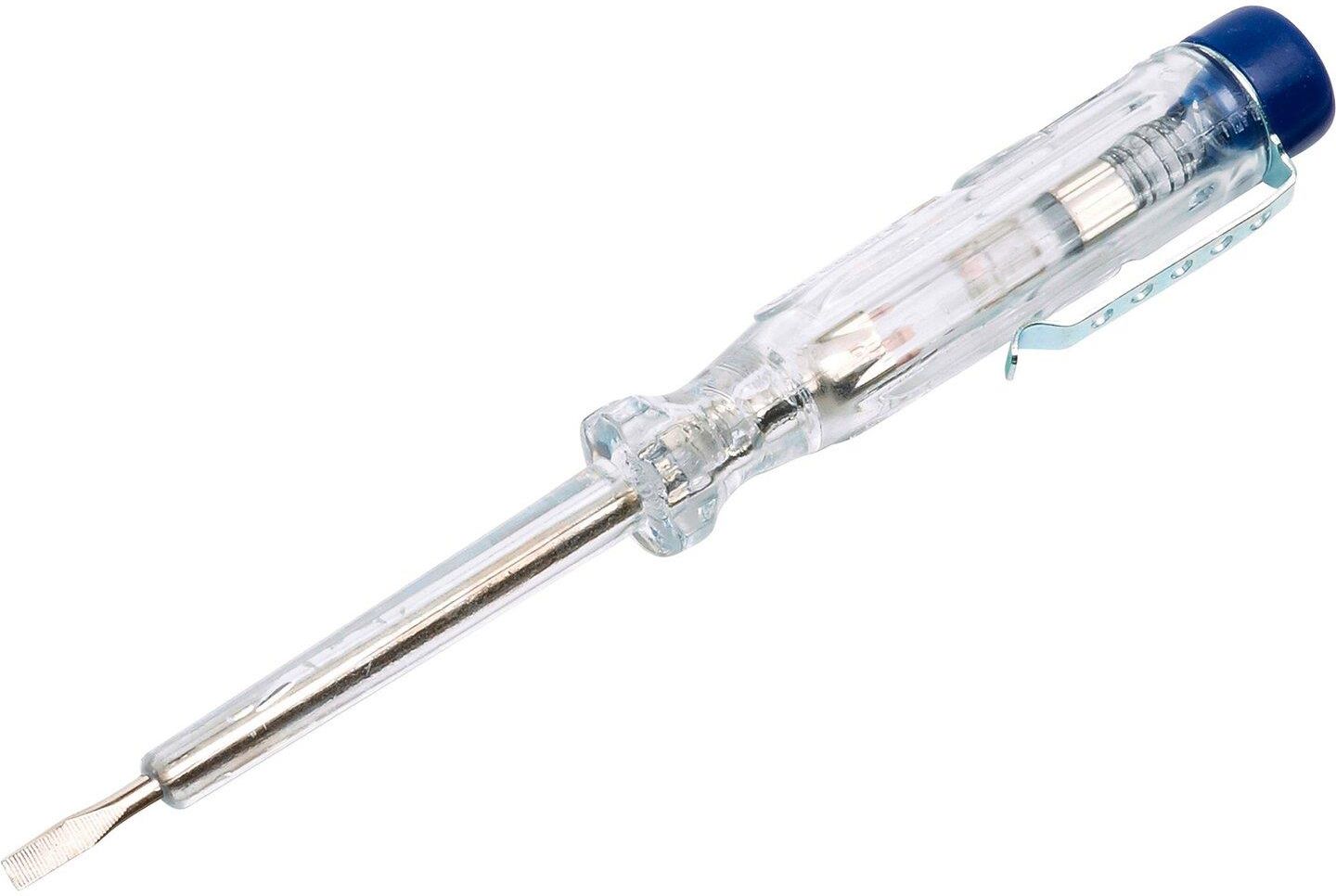 Próbnik napięcia 120 V - 250 V, 140 mm, LUX-TOOLS.Z obudową z przezroczystego tworzywa, która pozwala obserwować lampkę kontrolną w każdym położeniu rękojeści. Trzpień izolowany jest na całej długości.