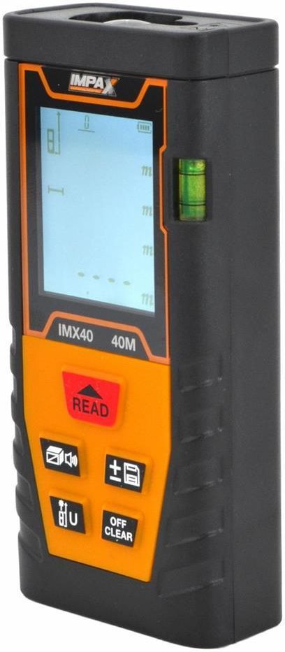 Dalmierz laserowy Impax IMX40 IP54, zasięg 40m Kod towaru: IMX40 Marka: Dalmierz laserowy IMPAX - IP54, zasięg 40m Dalmierz laserowy IMPAX to niezastąpione narzędzie do szybkiego pomiaru odległości, powierzchni i kubatury pomieszczeń. Dzięki nowoczesnej technologii, umożliwia precyzyjne pomiary do 40 metrów, co czyni go idealnym dla profesjonalistów i majsterkowiczów. Specyfikacja techniczna: Maksymalny zakres pomiarowy: 0,05 - 40 m Jednostki pomiarowe: metry, cale, stopy Wyświetlacz: LCD z podświetleniem Wymiary: 104 x 48 x 25 mm Stopień ochrony: IP54 Zasilanie: 2 baterie AAA 1,5V Właściwości: Automatyczne obliczanie powierzchni i kubatury Możliwość zapisywania do 99 pomiarów Tryb pomiaru ciągłego dla większej wygody Solidna konstrukcja zapewniająca odporność na warunki atmosferyczne