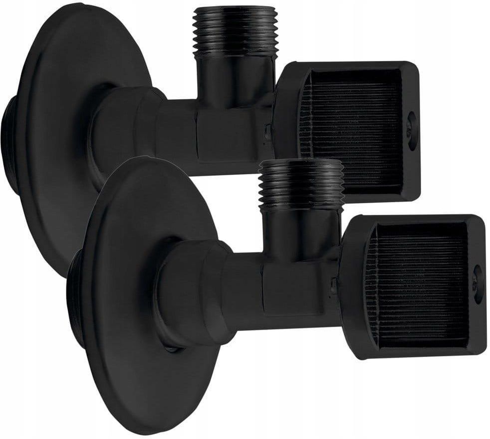 Zawór kątowy Kolor Czarny mat Materiał Mosiądz Rozmiar gwintu 1/2"x3/8" Wyposażenie Bez filtra Gwinty zewnętrzne zgodnie z ISO288/1 Ciśnienie robocze: 10 bar Ciśnienie maksymalne: 16 bar Maksymalna temperatura wody: 80 °C Szczelność testowana na 100% Przepływ otwarty: 1/4 obrotu Rozeta maskująca ze stali nierdzewnej