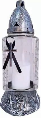 Cer-Far Znicz Szklany Z Krzyżem I Czarną Wstęgą Srebrny 27cm Goleniów