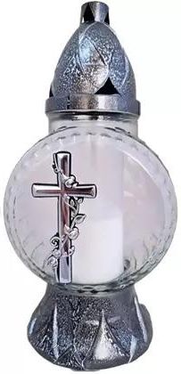 Cer-Far Znicz Szklany Ze Srebrnym Krzyżem 26cm Goleniów
