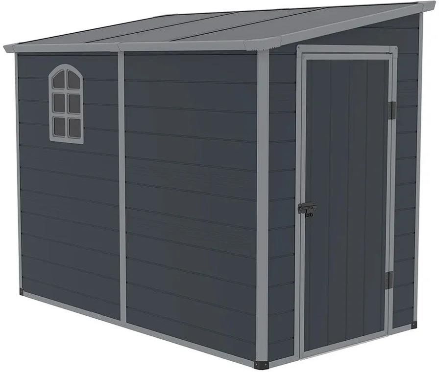 Westmann Hortus L – przyścienny domek narzędziowy z tworzywa sztucznego w kolorze antracytu o wymiarah 143 x 248 x 194 cm Praktyczny schowek ogrodowy – więcej miejsca, mniej bałaganu! Zadbaj o porządek wokół domu bez konieczności stawiania dużych konstrukcji. Przyścienny domek narzędziowy Hortus L …