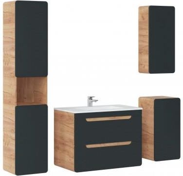 Zestaw mebli: Szafka z umywalką 80cm, Wysoki słupek, Szafka wisząca, Szafka stojąca, Szafka z Lustrem czarny/dąb naturalny, ARUBA Zestaw zawiera: Szafka pod umywalkę 80 cm Umywalka 80 cm Szafka łazienkowa 35x75x22cm Szafka łazienkowa 35x68x32 cm Słupek wysoki 35x170x32 cm Aruba to niezwykła …