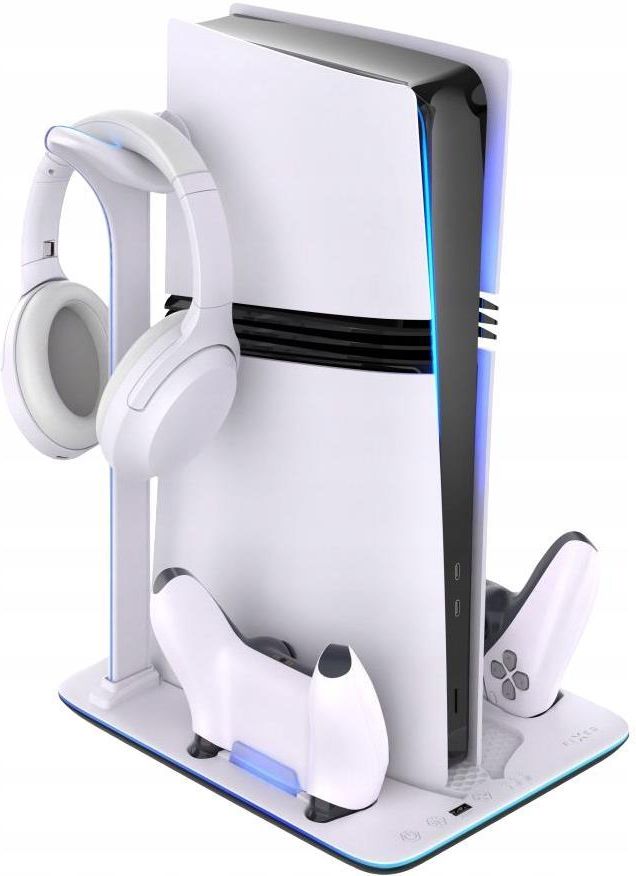 Stacja dokująca Fixed Docking Station Do Sony PlayStation 5 Slim (Digital) / Sony PlayStation 5 Pro Wersja kolorystyczna: Black / White (biało-czarna z podświetleniem) Możliwość jednoczesnego ładowania dwóch kontrolerów Mocny wentylator z regulacją intensywności (5000 RPM) Stabilne miejsce na słuchawki i pilot PS5 Media Remote Dodatkowa przestrzeń na gry – wszystko pod ręką Antypoślizgowe stopki chroniące sprzęt przed niechcianymi podróżami po biurku Zabezpieczenia przed przepięciem chronią Twoje akcesoria jak w filmie akcji Efektowne wielokolorowe oświetlenie LED dla wieczornych bitew Kod produktu: 8591680183548 Kod producenta: FIXPS5PS-MCS-BW W opakowaniu znajduje się stacja dokująca Fixed Docking Station zdejmowalna podstawka na słuchawki przewód USB-A do USB-A i USB-C śruba do stabilizacji konsoli na podstawce 2 piny do padów umożliwiające ładowanie Organizacja sprzętu gamingowego na 100% Nadeszła era porządku i końca kłębiących się kabli przy Twoim PlayStation 5 Slim (Digital) / Pro! Wszystko znajduje się na swoim miejscu dzięki dedykowanym uchwytom na pady, słuchawki i pilot. Stacja ładuje kontrolery, chłodzi konsolę i sprawia, że sprzęt prezentuje się niczym statek kosmiczny gotowy do startu! Chłodzenie i ładowanie — combo nie do przebicia Zamontowany potężny wentylator nie pozwala na przegrzanie nawet podczas najgorętszych sesji. Dwa kontrolery ładowane jednocześnie przez USB-C to patent dla tych, którym gra nigdy się nie kończy. Bezpieczna energia i efektowna atmosfera Stacja nie tylko dba o porządek – to również centrum rozrywki z podświetleniem LED, które zamieni Twoje stanowisko w strefę pro-gracza. Bezpieczeństwo ładowania i antypodróżne stopki wyciszają nawet najbardziej burzliwe rozgrywki, bo nikt przecież nie lubi, gdy sprzęt tańczy po biurku podczas celebracji gola! Specyfikacja: Wejście USB-C: DC 5VB/3A Wyjście USB-A: DC 5V/1.5A Wyjście USB-C: DC 5V/0.5A Czas ładowania kontrolera DualSense: 3 godziny Czas ładowania kontrolera DualSense Edge: 4 godziny Prędkość wentylatora: 5000 RPM Wymiary: 215 x 280 x 55 mm (z podstawką na słuchawki 215 x 280 x 360 mm) Waga: 513g Kompatybilność: PlayStation 5 Pro, PlayStation 5 (Slim), PlayStation 5 (Slim) Digital Edition