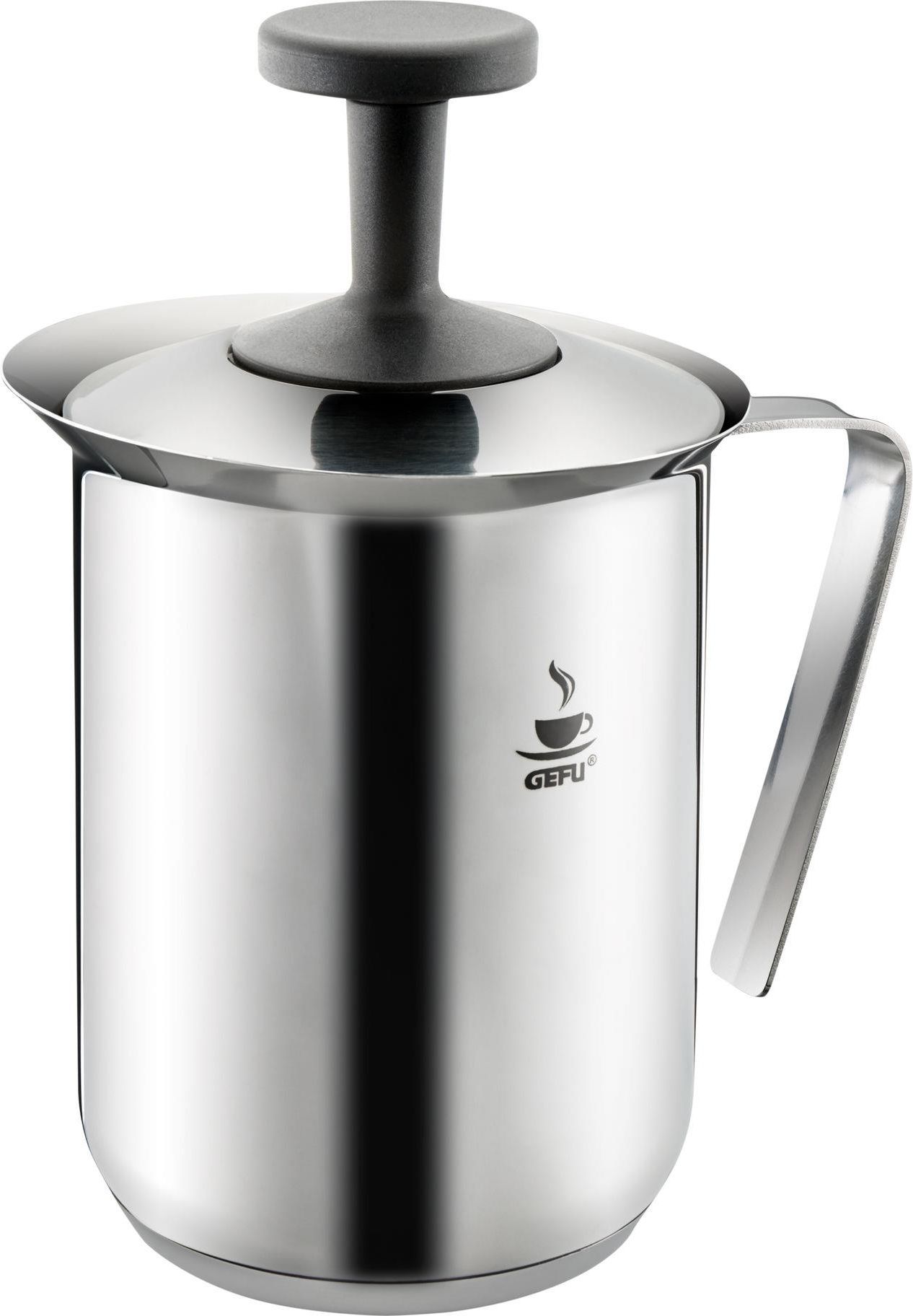Spieniacz do mleka Riccardo, GEFU Niemiecka marka GEFU oferuje wyjątkowo funkcjonalne akcesoria kuchenne produkowane są z najwyższej jakości materiałów w perfekcyjnym wykonaniu. To jeden z czołowych projektantów kuchennego designu, który łączy elegancki styl z praktycznym wymiarem. Symbolizuje innowacyjność, najwyższą jakość, niezawodność, trwałe korzyści dla klientów oraz niezwykłą radość z gotowania i smakowania. Zapewnia wyjątkowo wysoką odporność i trwałość narzędzi kuchennych. Za pomocą spieniacza do mleka RICCARDO można szybko i łatwo przygotować w domowych warunkach napój z kremową i gęstą pianką. Jeśli ktoś lubi pić capuccino czy latte to warto mieć w naszej kuchni. Przyda się również dla dzieci lubiących pić mleko, a także podczas robienia rozmaitych deserów. Bardzo łatwo uzyskamy doskonałą piankę mleczną do kaw i innych przepysznych napojów.Dzięki wkładce z podwójnym sitkiem mleko zostanie idealnie spienione, bez nieestetycznych grudek. Urządzenie umożliwia spienianie mleka na ciepło i zimno, a praktyczny uchwyt pozwala na łatwe poruszanie nim w górę i w dół. Spieniacz działa na każdym rodzaju kuchenki. Wskazówka: Aby osiągnąć doskonałą konsystencję pianki, warto zostawić świeżo spienione mleko na chwilę po jego przygotowaniu. CECHY SZCEGÓLNE: -do spieniania mleka-wkładka z podwójnym sitkiem-podwójne dno-do wszystkich rodzajów kuchenek-wykonany z wysokiej jakości stali nierdzewnej-można myć w zmywarce WYMIARY: Długość: 16.5 cm Szerokość: 11.5 cm Wysokość: 19.5 cm Pojemność: 300 ml Masa: 0.46 kg Linia GRINO Można myć w zmywarce Tak Gwarncja 20 lat Prodecent Gefu GmbH