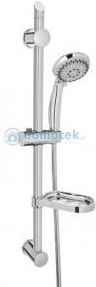 Zestaw natryskowy Esla chrom Klasyczny model, który sprawi, że codzienny prysznic przerodzi się w chwilę głębokiego relaksu. Słuchawka ma do wyboru aż 5 rodzajów strumienia. Kolor: Chrom Długość: 14 Szerokość: 18 Wysokość: 65,5 Klasa przepływu: Z Przepływ: str. hydr. 10,1 l/min str. miesz 11,2 l/min str. norm. 11,3 l/min str. miesz 10,9 l/min str. bicz 8,7 l/min Sposób montażu: Ścienny Regulowany teleskop: Nie Liczba funkcji słuchawki: 5 Rodzaje strumienia słuchawki: Strumień normalny, hydromasaż, bicz, normalny-hydromasaż, normalny-bicz Rozmiar słuchawki: 8,4 Material słuchawki: abs Kształt słuchawki: okrągły Rodzaj uchwytu słuchawki: Uchwyt suwakowy regulowany przyciskiem Uchwyt montażowy słuchawki: Górny regulowany Wysokość drążka: 65,5 Material drążka: stal nierdzewna Materiał dysz: Guma Długość węża: 150 Materiał węża: Stalowy Końcówka węża: heksagonalna i stożkowa Rodzaj węża: podwójny splot Zestaw: Nie System szybkiego montażu: Nie Anti-calc - skuteczna ochrona przed kamieniem. System anti-calc to silikonowe gumki zamontowane na powierzchni dyszy przy ujściach wody. Ich zadaniem jest przeciwdziałanie osadzaniu się kamienia, co przekłada się zarówno na walory estetyczne, jak też żywotność urządzenia. Taką dyszę łatwo się czyści bez konieczności stosowania agresywnych środków chemicznych. Osad z otworów dzięki systemowi anti-calc można łatwo wykruszyć np. przy pomocy gąbki. Mydelniczka - mydelniczka w zestawie rozwiązuje sprawę odstawienia kosmetyków w kabinie. Uchwyt suwakowy regulowany - uchwyt umożliwia regulację wysokości słuchawki i pozwala dopasować ją do swoich potrzeb. Uchwyty montażowe regulowane - regulowane uchwyty montażowe umożliwiają dopasowanie do istniejących już uchwytów w ścianie. To rozwiązanie znacznie ułatwia montaż w trakcie remontu.