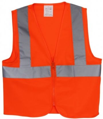 Kamizelka odblaskowa dla Dzieci "Pomarańczowa" - kamizelka z taśmą odblaskową, dzięki której Dziecko widoczne będzie na drodze z dalszej odległości - zapinana na zamek błyskawiczny - obwód klatki piersiowej do 94 cm - wymiary: 50 x 45 cm