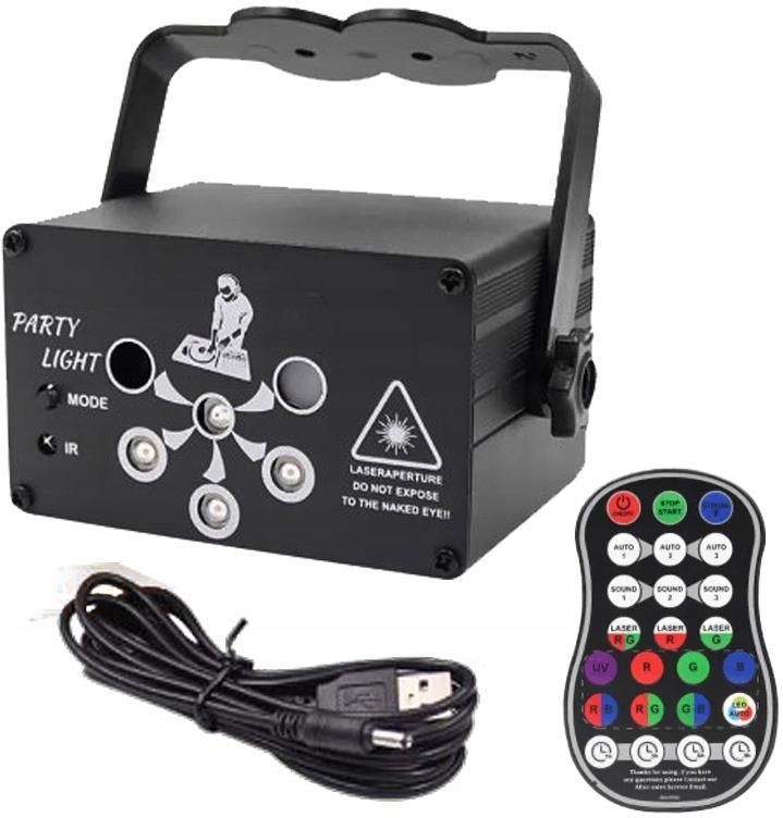 Laser disco MusicMate - 6hole Diody laserowe: zielona dioda laserowa 532nm, czerwona dioda laserowa 650nm Dioda LED: RGB 3IN1 + UV LED Zasilanie: AC100 - 240V, 50/60Hz Zasilacz: DC5V, 1A - 2A Środowisko pracy: 10-40oC w pomieszczeniach Czas nagrzewania: 2 - 8 minut Tryb sterowania: ręczny, zdalne sterowanie Tryb odtwarzania: automatyczny, dźwięk aktywny, stroboskop System chłodzenia: wentylator System skanowania: precyzyjny silnik Laser dyskotekowy LED 6hole to wielokolorowe źródło światła Laser dyskotekowy 6hole to wszechstronne oświetlenie, które łączy różne źródła światła, w tym 3-kolorową diodę LED, 3 lampy UV oraz czerwono-zielony laser. To urządzenie nie tylko generuje standardowe efekty świetlne ale także efekt barwienia, stroboskopu oraz unikalnych wzorów laserowych. Dzięki tej różnorodności źródeł światła, tworzenie niezapomnianych iluminacji staje się proste, a atmosfera każdej imprezy podkreślona jest wyjątkowymi efektami świetlnymi. Zainwestuj w Laser dyskotekowy 6hole od MusicMate i podnieś poziom rozrywki na swoich imprezach. Wyjątkowe efekty z Laserem dyskotekowym LED 6hole Jednym z najciekawszych elementów urządzenia są diody laserowe. Zielona dioda o długości fali 532nm i czerwona dioda o długości fali 650nm pozwalają na generowanie efektów laserowych o niezwykłej precyzji. Te ekskluzywne efekty laserowe nadają imprezie profesjonalny charakter i zachwycają gości unikalnymi wzorami i projektami, tworząc niepowtarzalną atmosferę. 3in1 + UV LED Korzystając z diod LED RGB 3IN1 oraz UV LED, możesz tworzyć różnorodne efekty świetlne, które idealnie dopasujesz do każdej okazji. Urządzenie emituje różnorodne barwy światła, co pozwala na stworzenie zarówno energetycznych i dynamicznych efektów, jak i delikatnych oraz nastrojowych iluminacji. Co więcej, diody UV umożliwiają oświetlenie fluorescencyjne, co sprawia, że urządzenie doskonale nadaje się na tematyczne imprezy lub występy artystyczne. Zainwestuj w Laser dyskotekowy 6hole od MusicMate i przekształć każde wydarzenie w niezapomnianą zabawę wizualną. Laser dyskotekowy 6hole sterowany intuicyjnym pilotem Laser dyskotekowy 6hole jest wyposażony w intuicyjny pilot, który umożliwia pełną kontrolę nad efektami świetlnymi z dowolnego miejsca w pomieszczeniu. Bez względu na to, czy jesteś DJ-em, organizatorem imprez, czy po prostu bawisz się w domu, masz pełną kontrolę nad oświetleniem. To znacząco ułatwia dostosowanie efektów świetlnych do bieżącej atmosfery, co pozwala na stworzenie idealnej oprawy świetlnej dla każdej okazji. Solidna konstrukcja i łatwy montaż Laser dyskotekowy 6hole został zaprojektowany z myślą o trwałości i niezawodności. Solidna konstrukcja oraz ergonomiczny uchwyt montażowy pozwalają na bezproblemowy montaż i dokładne umieszczenie urządzenia w odpowiednim miejscu. Ponadto, wygodne przenoszenie sprawia, że jest to idealne oświetlenie zarówno na imprezach plenerowych, w studiach, szkolnych dyskotekach, czy podczas koncertów. Szybkie nagrzewanie Laser dyskotekowy 6hole potrzebuje zaledwie 2-8 minut, aby być w gotowości do pracy. Oferuje również szeroki wybór efektów świetlnych, które można dostosować do własnych preferencji. Możesz wybierać spośród automatycznej zmiany kolorów, sterowania głosowego, wyboru konkretnego koloru oraz trybu stroboskopu. Efekty laserowe są precyzyjnie zsynchronizowane z muzyką, co tworzy wyjątkową atmosferę na parkiecie tanecznym. Dzięki 60 kombinacjom zmian wzorów Twoje imprezy nabierają zupełnie nowego wymiaru. Zainwestuj w Laser dyskotekowy 6hole od MusicMate i popraw jakość oświetlenia na swoich wydarzeniach. W zestawie Laser dyskotekowy Pilot sterowania Kabel zasilający