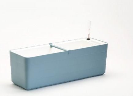 Skrzynka balkonowa 11L Samonawadniająca 60cm Niebieska BREBERIS Skrzynie na rośliny z serii BREBERIS są świetnym dodatkiem do balkonu czy tarasu. W donicach uprawiać można kwiaty, warzywa jak i zioła. Stylowe obudowy wkomponują się w wystrój każdego balkonu, dostępne są w różnych kolorach. Produkty czeskiego producenta wyróżniają się bardzo dobrą jakością wykonania. Materiały użyte do produkcji są najwyższej jakości dzięki czemu donice, skrzynki czy inne produkty są odporne na warunki atmosferyczne oraz na uszkodzenia mechaniczne. Dane techniczne: Wysokość: 19,7 cm Szerokość: 19,5 cm Długość: 60 cm Pojemność ziemi: 11L Pojemność wody: 4L Kolor: niebieska Wyprodukowane w Czechach Nawet pozostawienie wody na okres zimowy, nie powinno doprowadzić do jej uszkodzenia, dzięki dostatecznej przestrzeni dla rozszerzalności lodu, jak i pewnej elastyczności materiału. Dzięki zastosowaniu podwójnej ścianki, ziemia w skrzyni nie przegrzewa się - pojemnik z ziemią jest umieszczony w obudowie o większym rozmiarze. Donica samonawadniająca co to takiego? Doniczki samonawadniające to idealne rozwiązanie dla osób, które często wyjeżdżają, pozostawiając rośliny domowe bez opieki nawet na kilka tygodni. Sprawdzą się również w przypadku osób zapominalskich i zabieganych, które chcą mieć piękne, zielone rośliny w domu, a nie pamiętają o ich podlewaniu lub brakuje im na to czasu. To duże udogodnienie, ponieważ w przypadku roślin posadzonych w zwykłych donicach, może być konieczne nawet codzienne podlewanie. Donica samonawadniająca jak działają? Każda doniczka samonawadniająca jest złożona z dwóch części. Jej górna, większa część to miejsce na ziemię i roślinę. Wygląda podobnie do zwykłej donicy, jednak dodatek stanowi tutaj element, łączący górną i dolną część. Zwykle jest to sznurek (pojedynczy lub podwójny) zanurzony w pojemniku na wodę i zastępujący tradycyjną podstawkę. Sprawia to, że rośliny są stale nawadniane. Wodę uzupełnia się przez specjalny otwór. Sprawdź naszą ofertę na której można znaleźć różne donice samonawadniające oraz akcesoria.