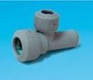 Hep2O TRÓJNIK RED. 22x15x22 BOSY.Ostatni z redukcyjnych trójników. Trójnik o cechach trójnika redukcyjnego górnego z możliwością wciśnięcia go bosym końcem np. w kolano, trójnik. Króciec redukcyjny jest w osi pionowej (w górę). Oś pozioma bez redukcji charakteryzuje się króćcem wewnętrznym w który wciskamy np. rurę i drugim króćcem bosym który jest wciskany do innej kształtki lub złączki. Umożliwia on wykonanie ciasnego rozgałęzienia z redukcją na odnodze