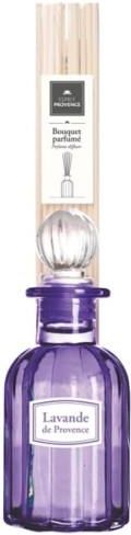 Dyfuzor zapachowy Lavande de Provence z naturalnymi olejkami eterycznymi z lawendy Odkryj nasz Bukiet Aromatyczny Lavande de Provence i wprowadź relaksującą, przyjemną atmosferę prowansalskich pól lawendy do swojego domu! W eleganckiej karbowanej, szklanej butelce, nasz bukiet aromatyczny nie tylko …