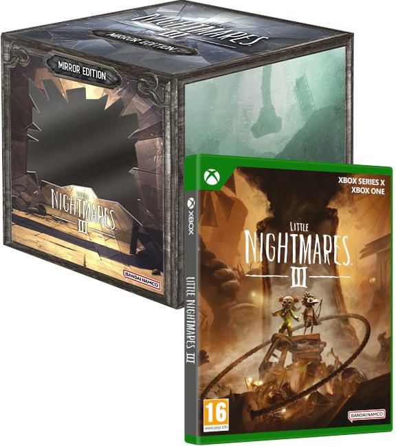 Wyrusz na nową przygodę w wyjątkowym świecie Little Nightmares. W grze Little Nightmares III śledzisz podróż pary Low & Alone, która szuka drogi wyjścia z Nowhere. Uwięzieni w Spirali, zlepku niepokojących miejsc, oboje przyjaciele będą musieli współpracować, aby przetrwać w niebezpiecznym świecie pełnym iluzji i uciec przed jeszcze większym zagrożeniem czającym się w cieniach. Po raz pierwszy w serii możesz stawić czoła swoim dziecięcym lękom razem z przyjacielem za pomocą kooperacji online lub solo z towarzyszem sterowanym przez sztuczną inteligencję. Mirror edycja Little Nightmares III zawiera grę Little Nightmares III 2 dodatkowe rozdziały gry zestawy kostiumów przewoźników i mieszkańców (wydane zostaną później) figurka steelbook fizyczny artbook fizyczna i cyfrowa ścieżka dźwiękowa naklejki przechowywane w specjalnym pudełku STAWCIE RAZEM CZOŁA SWOIM DZIECIĘCYM LĘKOM - Grasz jako Low i Alone, najlepsi przyjaciele od chwili, gdy spotkali się w tym samotnym koszmarze. Każdy z nich posiada swój ikoniczny przedmiot: Low łuk, a Alone klucz nastawny. Dzięki współpracy doskonalą się w skradaniu się po ukrytych korytarzach, wzajemnym podnoszeniu się przez masywne przeszkody i pilnowaniu swoich pleców. WYRUSZ NA PRZERAŻAJĄCĄ I NIEPOKOJĄCĄ PRZYGODĘ - Gdziekolwiek się udasz, w Nowhere mieszkają przerażające potwory. Ci Mieszkańcy nie wahają się zbaczać z drogi, aby złapać każdego natrętnego małego Gościa, który przyciągnie ich uwagę. Możliwe, że będziesz grać przerażającą grę w chowanego z Monster Baby w piaszczystych ruinach Nekropolu, starać się unikać stada żarłocznych Candy Weevils w niepokojącej fabryce cukierków lub uchylać się przed ciężkimi nogami podczas biegu po deszczowej promenadzie brudnego wesołego miasteczka. Aby przetrwać, musisz być gotowy na ucieczkę, ukrywanie się, a nawet obronę w chwilach grozy. ZANURZ SIĘ W SPIRALI - Nie daj się zbytnio rozproszyć posępnym pięknem Nowhere. Czekają na ciebie mroczne tajemnice, ponieważ Low i Alone podążają swoją lustrzanstą ścieżką przez Spiralę. Gdy każde nowe miejsce staje się bardziej niebezpieczne i niepokojące niż poprzednie, zaczynają się wyłaniać traumatyczne błyski z przeszłości. Czy Low i Alone uda się w końcu uciec z tego nieskończonego koszmaru? Tylko ty możesz im pomóc, malutcy...
