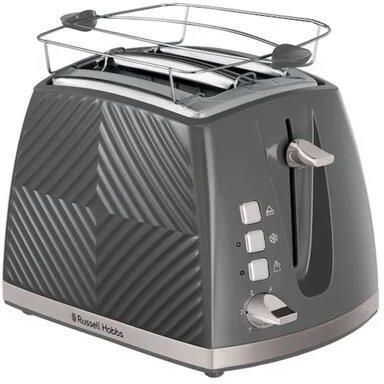 Toster Russell Hobbs 26392-56 Toster na 2 kromki z nowoczesnym wzornictwem obudowy 3D i akcentami ze stali nierdzewnej Funkcje rozmrażania, podgrzewania i anulowania procesu opiekania na bocznym panelu Idealne do opiekania także grubszych kromek chleba Cechy i funkcje: Nowoczesne wzornictwo pasujące do każdej kuchni Prezentujemy Państwu doskonały toster Russell Hobbs 26392-56, który idealnie sprawdzi się w codziennym przygotowywaniu smacznych i chrupiących tostów o różnej grubości. Dzięki zaawansowanym funkcjom i nowoczesnemu designowi, ten toster zmieni Państwa codzienne posiłki w autentyczne doznania smakowe. Urządzenie posiada teksturowaną obudowę, która nie tylko pasuje idealnie do różnych aranżacji kuchennych, ale także zapewnia łatwość utrzymania go w czystości. Poszerzone otwory Jedną z głównych cech tego tostera jest możliwość wypiekania tostów o różnej grubości. Odpowiednio duże , dwa otwory na tosty umożliwiają swobodne włożenie nawet najgrubszych kromek, co pozwala na przygotowywanie tostów idealnie dostosowanych do własnych preferencji smakowych. Funkcja High Lift Funkcja High Lift unosi chleb do góry, ponad poziom otworów, co chroni Twoje dłonie przed poparzeniem podczas wyjmowania tostów z tostera.Tacka na okruchy to gratka dla lubiących porządek w kuchni. Gromadzi okruchy z opiekanego pieczywa, dzięki czemu zachowujesz porządek w kuchni i unikasz ich rozprzestrzeniania się. Funkcje rozmrażania, podgrzewania i anulowania procesu opiekania Spieszysz się? Możesz opiekać w tosterze pieczywo wprost z zamrażalnika. Potrzebujesz przerwać proces robienia tostów? Funkcja anulowania daje Ci pełną kontrolę! Dodatkowo opcja podgrzewania tostów pozwala Ci przywrócić im idealną temperaturę, kiedy ostygły. Specyfikacja techniczna: Producent Russell Hobbs Kolor Szary Moc 850 W Liczba tostów 2 Tacka na okruchy Tak Rozmrażanie Tak Automatyczne wyłączenie po zakończeniu opiekania Tak Ruszt do bułek Tak Regulacja stopnia opiekania 6-stopniowa Wykonanie obudowy Stal nierdzewna Waga brutto 1,92 kg Wymiary opakowania 21 x 31 x 27 cm Zawartość zestawu: Toster Russell Hobbs 26392-56 Instrukcja obsługi Oryginalne opakowanie