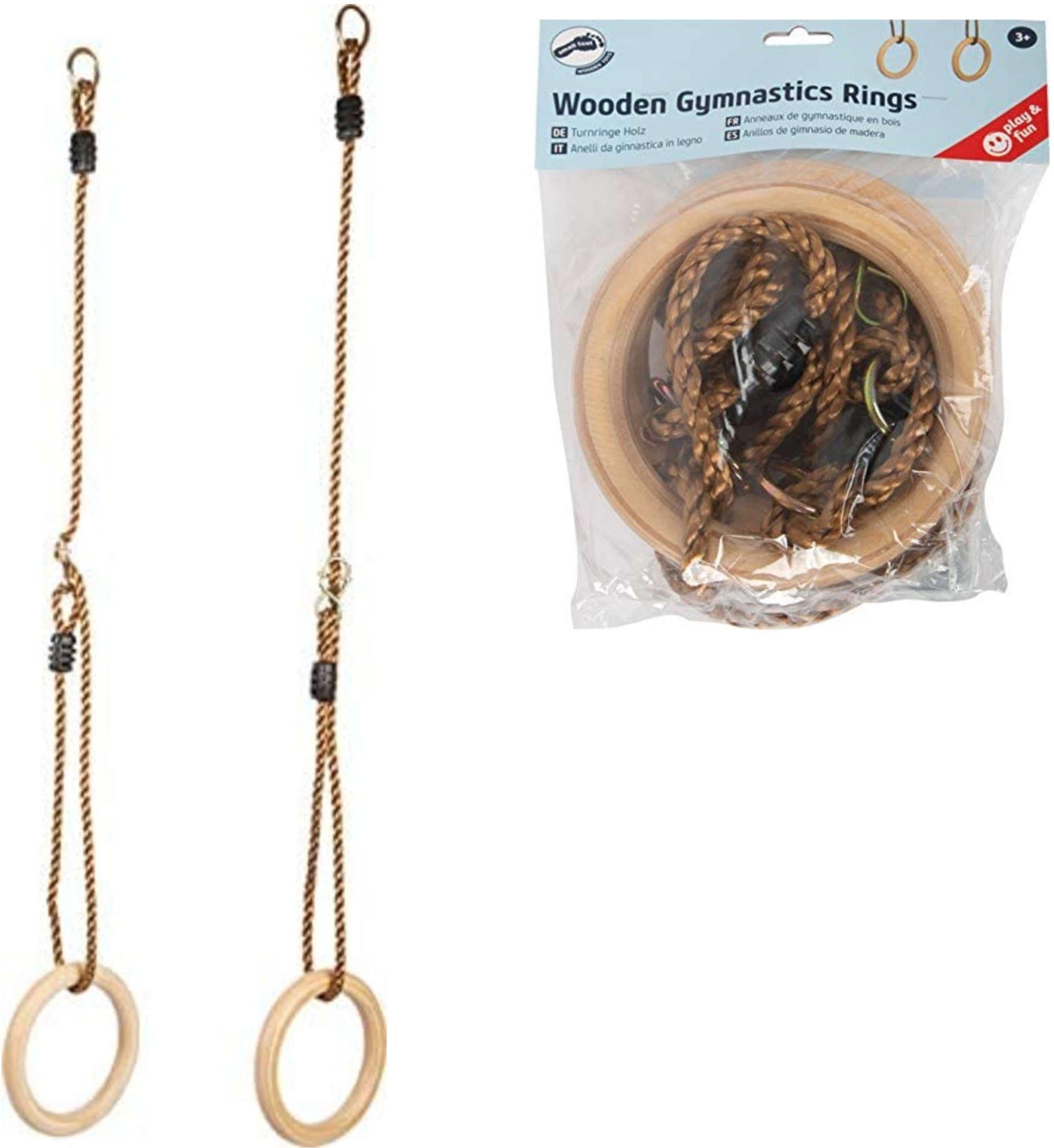 Zaprogramowany wysoki lot! Kółka gimnastyczne i kółka do bujania od Small Foot fascynują zarówno młodych, jak i starszych, ponieważ pragnienie huśtania się, kołysania i zabawy pełnej fantazji można łączyć na wiele sposobów. Dzięki drewnianemu uchwytowi i dopasowanemu rozmiarowi nawet dzieci o mniejszych dłoniach mogą mieć ogromną radość z huśtania się na kółkach gimnastycznych. Nawet najlepsze układy można trenować na podwórku oraz w domu. A przez cały czas młodzi, aspirujący akrobaci ćwiczą wyczucie pędu i rytmu, a także siłę, równowagę i wytrzymałość. Regulowane liny są szczególnie praktyczne, aby dopasować kółka gimnastyczne do indywidualnego wzrostu użytkownika. Posiadają metalowe pierścienie do zawieszenia i montażu. Wymiary produktu: 122 cm długość Średnica kół: 18 cm Maksymalne obciążenie: 100 kg Kółka gimnastyczne i huśtawki wykonane z wytrzymałego drewna, Optymalny komfort chwytu podczas gimnastyki, Z metalowymi pierścieniami do montażu i zawieszenia, Kółka gimnastyczne można dostosować do indywidualnego wzrostu dzięki regulowanym linom, Rozmiar pierścionka jest idealnie dopasowany do dziecięcych dłoni, Do treningu siły, równowagi i wytrzymałości.