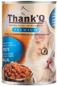 THANK'Q Premium z rybą 415g to mokra karma dla dorosłych kotów. Dostarcza białka, nawadnia i wspiera trawienie, witalność oraz sierść.