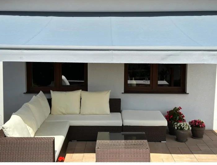 Markiza elektryczna 500x300 Szary Jasny PREM - Wersja Elektryczna Premium - półkaseta Wysuw: 300 cm Belka nośna: 40 mm Aluminiowe ramiona duże: 58mm x 28mm x 1,8mm Aluminiowe ramiona małe: 49mm x 20mm x 1,2 mm Kolor: Szary jednolity Waga: 53 kg Szerokość: 500 cm Uchwyty: 3 uchwyty ścienne Ramiona: 2 ramiona napinające Montaż: Do ściany lub opcjonalnie do sufitu (wymagane dodatkowe uchwyty) Wersja: Elektryczna Premium - półkaseta Obok na zdjęciu przedstawiliśmy Państwu różnice w konstrukcji między naszymi markizami w wersji STANDARD (bez półkasety) oraz PREMIUM (z półkasetą). W odpowiedzi na Państwa zapytania, z powodzeniem zastosowaliśmy kolor szary (antracyt), zarówno w przypadku konstrukcji, jak i wszystkich akcesoriów: - uchwyty mocujące, korba, listwa ozdobna przednia i inne - dzięki czemu nie tylko materiał ale integralna całość stanowi harmonijne połączenie walorów zarówno estetycznych jak i praktycznych. Oferujemy Państwu wyjątkowo eleganckie modele markiz, które idealnie wpisują się w najnowsze trendy aranżacji: * tarasów * balkonów * elewacji budynków Antracytowa konstrukcja oraz elementy wykończeniowe i akcesoria, nadają markizie nowoczesny i wyszukany charakter. SZCZEGÓŁOWA SPECYFIKACJA TECHNICZNA: - Bezprzewodowe sterowanie elektryczne za pomocą pilota - Tkanina poliestrowa, impregnowana, zabezpieczona przed UV - Gramatura materiału: 280g/m2 - Specjalnie wzmocniona konstrukcja aluminiowa w kolorze ANTRACYT, malowana proszkowo, lakierowana - Grubość ścianki konstrukcji: 1,2 mm - Wysięg regulowany - Z przodu aluminiowy panel ozdobny poprawiający estetykę produktu - Głowica awaryjnego sterowania przy pomocy korby - Regulowany kąt nachylenia w zakresie 0 - 45 stopni ZESTAW ZAWIERA: - markiza z silnikiem - korba wysuwająca/zwijająca - uchwyty do montażu naściennego - instrukcja w języku polskim - pilot