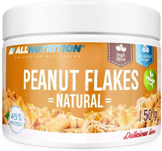 OPAKOWANIE: 150 G,BIAŁKO: 45% , ODPOWIEDNI DLA WEGAN Dlaczego PEANUT FLAKES NATURAL? ODTŁUSZCZONE MASŁO ORZECHOWE W PŁATKACH AŻ 45% BIAŁKA! BEZ DODATKU CUKRU! IDEALNY DLA WEGAN! BOGATE W BŁONNIK! NAJWYŻSZEJ JAKOŚCI ORZESZKI ARACHIDOWE! CHRUPIE BEZ KOŃCA! IDEALNE DO OWSIANKI BĄDŹ FIT DESERÓW! Co to jest ALLNUTRITION - Peanut Flakes Natural ? ALLNUTRITION PEANUT FLAKES jest to odtłuszczone masło orzechowe w wyjątkowo chrupiących płatkach, które zawiera o 30% mniej kalorii niż klasyczne masło orzechowe! Płatki zrobione są z wolno-prażonych orzeszków arachidowych, poddawanych procesowi usuwania z nich, aż do 90% oleju. Nie dodaliśmy do nich cukru, utwardzaczy, soli czy innych zbędnych dodatków, przez co są źródłem zdrowych tłuszczów i białka. ALLNUTRITION PEANUT FLAKES ma w składzie 45% białka! To dużo więcej niż w standardowych masłach orzechowych! Białko zawarte w ALLNUTRITION PEANUT FLAKES przyczynia się do zwiększania i utrzymania masy mięśniowej – ma to kluczowe znaczenie dla realizacji celów treningowych, niezależnie od tego, czy chcesz budować masę, czy redukować :) ALLNUTRITION PEANUT FLAKES idealnie odnajdzie się w Twojej kuchni! Najlepiej będzie smakować jako dodatek do owsianki, wafli ryżowych jak i przeróżnych fit deserów! Doskonale też, sprawdzi się w przygotowywaniu proteinowych koktajli. Zastosowanie naszego kremu ograniczone jest jedynie przez Twoją wyobraźnię. Chrupkość płatków zawartych w PEANUT FLAKES sprawi, że Twój posiłek stanie się wyjątkowy! Sam się przekonaj - CHRUPIĄ BEZ KOŃCA! ♥. Kiedy PEANUT FLAKES NATURAL? IDEALNIE NADAJE SIĘ JAKO DODATEK DO WYPIEKÓW, DESERÓW, OWSIANKI - SAM WYBIERZ JAK SMAKUJE NAJLEPIEJ!