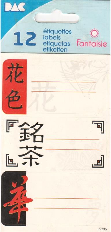 Chińskie znaki: Każda etykieta jest ozdobiona chińskimi znakami, które są pisma logograficznego systemu pisania używanego w języku chińskim. Te znaki są bogate w historię i kulturę Chin. Różnorodność: W zestawie znajduje się 12 etykietek, zatem każda z nich ma inny chiński znak. Może to być na przykład znak zwierzęcia zodiaku chińskiego, który przypada na dany rok, znak szczęścia lub popularne sentencje i powiedzenia.