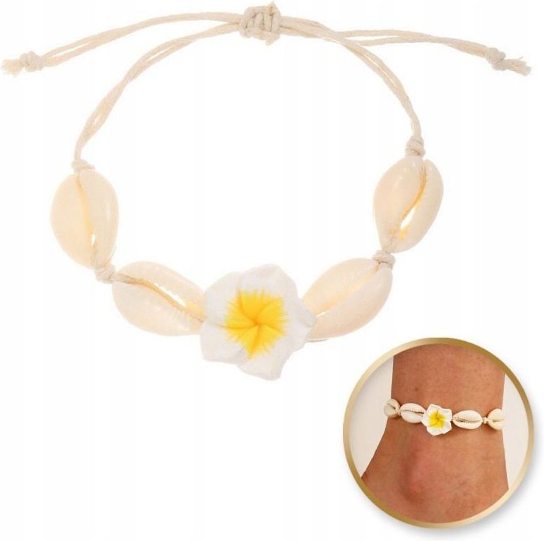 Bransoletka 2w1 na stopę i rękę na sznurku MUSZELKI i KWIAT HAWAJSKI Golub-Dobrzyń