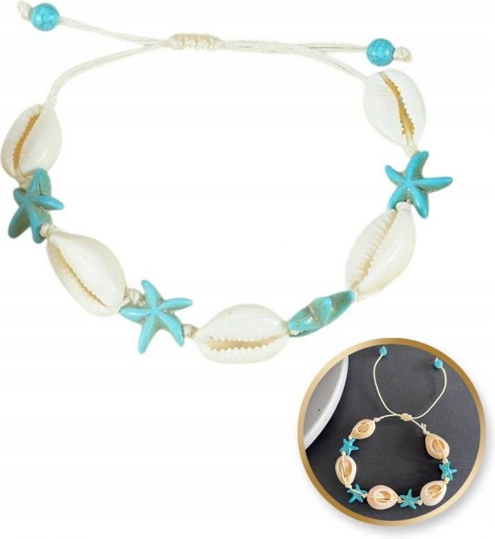 Bransoletka 2w1 na stopę i rękę na sznurku MUSZELKI i ROZGWIAZDY B543N Golub-Dobrzyń
