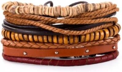 Bransoletka skórzana Składa się z pięciu pasków, który można ustawić jednym węzłem Standardowy rozmiar pasuje na nadgarstek 18 cm z możliwością regulowania Waga 26 g Wykonana ze skóry Posiada metalowe ozdobne elementy Idealny pomysł na prezent Świetnie nadaje się dla chłopaka jak i dziewczyny Zapraszamy serdecznie do zakupów !
