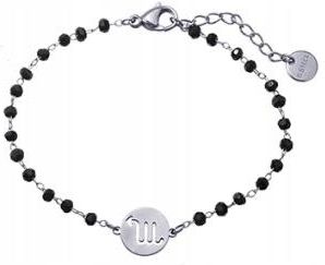 Bransoletka z znakiem zodiaku Składa się z łańcuszka ozdobionego koralami Standardowy rozmiar pasuje na nadgarstek 18 cm z możliwością regulacji Waga 12 g Kolor czarny, srebrny Posiada emblemat z znakiem zodiaku na środku Wykonana z stali chirurgicznej Idealny pomysł na prezent Świetnie nadaje się …