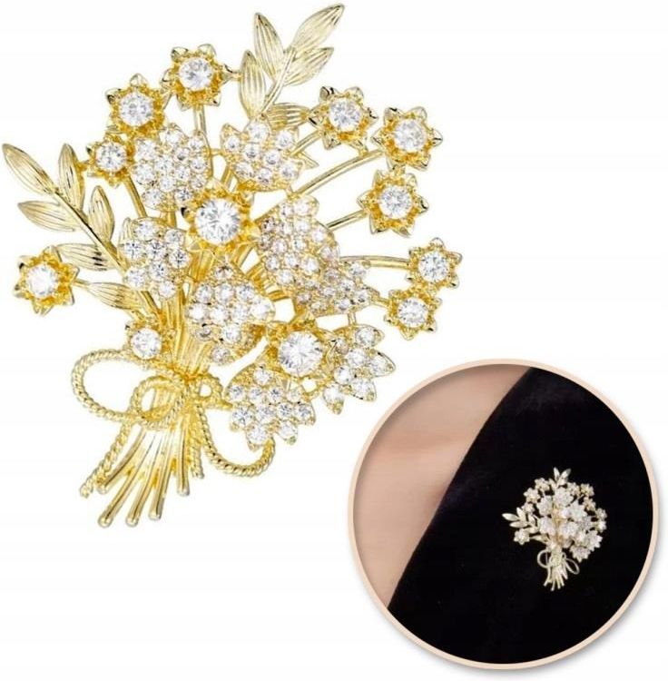 Broszka ozdobna elegancka z cyrkoniami, Bukiet kwiatów BZ184 Golub-Dobrzyń