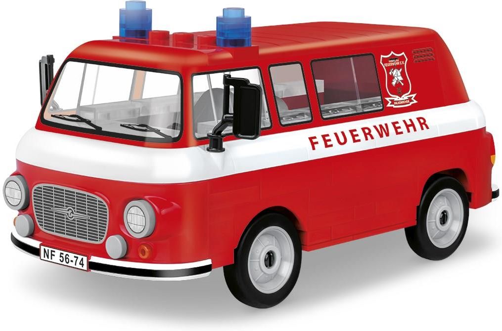 KLOCKI COBI 24594 BARKAS B1000 STRAŻ POŻARNA I PŁYTKA KONSTRUKCYJNA SPECYFIKACJA PRODUKTU: Marka: Cobi Seria: Youngtimer Collection Ilość elementów: 151 szt. Ruchome elementy: Tak Wymiary modelu (dł./szer./wys.): 13 cm / 7 cm / 6.5 cm Skala modelu: 1:35 Wymiary opakowania (dł./szer./wys.): Zapakowane w oryginalne opakowanie: Tak Zawiera instrukcje obsługi: Tak Grupa wiekowa: 5+ Klocki Cobi to wysokiej jakości, estetycznie zapakowane zestawy klocków idealne na prezent. Produkowane w Polsce Wspieraj rozwój swojego dziecka. Zabawa klockami Cobi wzbogaca kreatywność, logiczne myślenie i zdolności manualne. Budowanie z klocków to również rozwój małej motoryki oraz wobraźni małego konstruktora. Klocki tej marki to nie tylko produkt dla dzieci, to przede wszystkim wysokiej jakości klocki, z których ucieszy się każdy pasjonata militariów, lotnictwa itp. Klocki Cobi są odwzorowaniem realnych modeli. Zestawy produkowane są w różnej skali, część z nich zawiera espozytor dzięki czemu możesz zbudować piękną kolekcję. 151 wysokiej jakości elementów, wyprodukowane w UE przez firmę z ponad 20-letnią tradycją, spełniają normy bezpieczeństwa dotyczące produktów dla dzieci, w pełni kompatybilne z innymi markami klocków konstrukcyjnych, klocki z nadrukami nie odkształcają się i nie bledną w czasie zabawy czy pod wpływem temperatury, czytelna i intuicyjna instrukcja oparta na rysunkach i ikonach, obracające się koła. Wymiary pudełka (dł x sz x wys): 23,5 x 5 x 18 cm. Barkas B1000 to samochód dostawczy i mikrobus produkowany w latach 1961–1991 w byłej NRD. Jedyny samochód tej klasy produkowany w Niemczech Wschodnich. Samochody Barkas były eksploatowane głównie w NRD. Wersja Feuerwehr została przystosowana do potrzeb straży pożarnej. Kompatybilne z innymi znanymi markami klocków. Z zestawu klocków konstrukcyjnych COBI zawierającego aż 151 elementów wybudujesz samochód marki Barkas w wersji dla straży pożarnej. Model został wiernie odwzorowany w skali 1:35. W zestawie zrezygnowano całkowicie z naklejek. Klocki zostały pokryte wysokiej jakości nadrukami, które nie ścierają się nawet podczas intensywnej zabawy. Zestaw ma przemyślaną zwartą konstrukcję oraz ruchome koła. Model z klocków konstrukcyjnych COBI będzie w pokoju dziecięcym nie tylko zabawką, ale również przyczyni się do zainteresowania historią motoryzacji. Z pewnością pomoże rozwinąć zdolności motoryczne dzieci oraz podniesie umiejętności konstrukcyjne. Dla dorosłych fanów klocków będzie to piękny model historycznego pojazdu oraz być może zaczątek przyszłej kolekcji.