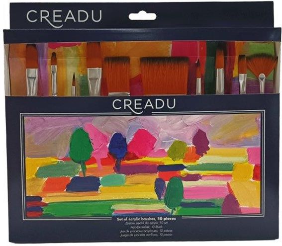 CREADU PĘDZLE BRĄZ NYLON AKRYL 10 Creadu Zestaw pędzli do farb akrylowych z nylonowym włosiem, 10 sztuk
