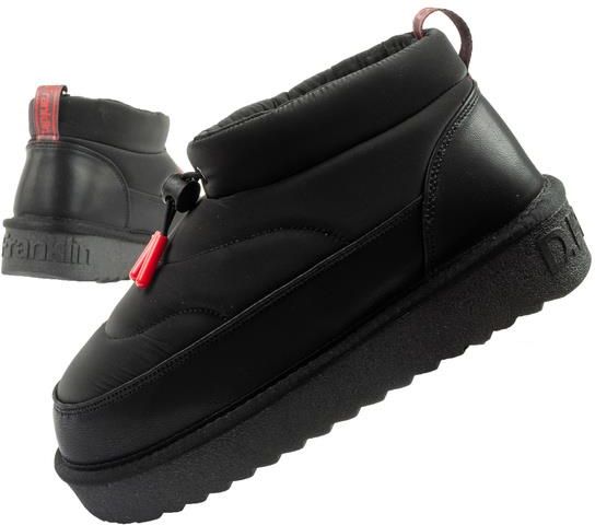 D.Franklin buty śniegowce damskie zimowe modne ocieplane botki czarne Damskie stylowe buty marki D.Franklin. Podwyższona cholewka wykonana z najwyższej jakości materiałów tekstylnych powlekanych oraz skóry ekologicznej, którą warto przed użyciem zaimpregnować, aby buty posiadały dodatkową ochronę przed wilgocią. Buty ocieplane futerkiem, gwarantują ciepło nawet w bardzo niskich temperaturach. Stoper na górze cholewki zapewnia idealne dopasowanie do stopy. Gruba, w pełni amortyzowana podeszwa zewnętrzna chroniąca przed mrozem. Idealne obuwie do każdej modnej stylizacji. Zimowe śniegowce marki D.Franklin. Buty D.Franklin Nordic to idealne połączenie modnego designu i funkcjonalności. Inspirowane stylem outdoorowym, zapewniają komfort w codziennym użytkowaniu oraz świetnie sprawdzają się w jesienno-zimowych warunkach.