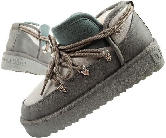 D.Franklin buty śniegowce damskie zimowe modne ocieplane botki szare Damskie stylowe buty marki D.Franklin. Podwyższona cholewka wykonana z najwyższej jakości skóry ekologicznej, którą warto przed użyciem zaimpregnować, aby buty posiadały dodatkową ochronę przed wilgocią. Buty ocieplane futerkiem, gwarantują ciepło nawet w bardzo niskich temperaturach. Klasyczne sznurowanie zapewnia idealne dopasowanie do stopy. Gruba, w pełni amortyzowana podeszwa zewnętrzna chroniąca przed mrozem. Idealne obuwie do każdej modnej stylizacji. Zimowe śniegowce marki D.Franklin. Buty D.Franklin Nordic to idealne połączenie modnego designu i funkcjonalności. Inspirowane stylem outdoorowym, zapewniają komfort w codziennym użytkowaniu oraz świetnie sprawdzają się w jesienno-zimowych warunkach.