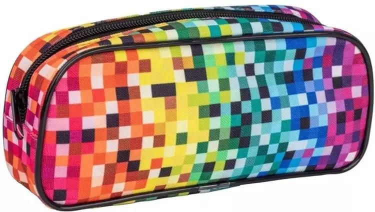 Duży piórnik prostokątny. Zaprojektowany z myślą o pomieszczeniu wszystkich potrzebnych art. szkolnych w dużej ilości. Dodatkowa klapka umożliwi utrzymanie porządku, a wszyta kieszonka z zamkiem pomieści małe notatki. Wykonana z wytrzymałego materiału, odpornego na zabrudzenia. Precyzyjnie wykończona, z ozdobnym zamkiem w różnych kolorach. Materiał: poliester Wielkość 21 x 9,5 x 6 cm