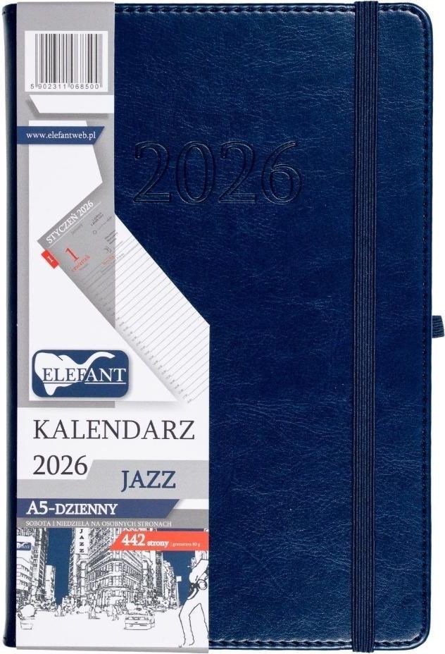 Kalendarz 2026 A5 dzienny Jazz - granatowy Producent: Elefant Ilość stron: 442 Format: 21.0 x 14.0 x 32.0 cm Oprawa: Twarda EAN: 5902311068500 Cechy produktu Jazz: kalendarz książkowy 2026 format: A5 oprawa: twarda wykonana z wysokiej jakości materiału imitującego skórę kolor: granatowy oprawa …
