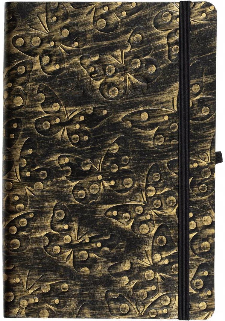 Jazz Kalendarz A5 dzienny motyl-złoty 2026 NOWY MODEL W OFERCIE! • Jazz: kalendarz książkowy 2026 • format: A5• oprawa: miękka wykonana z wysokiej jakości materiału imitującego skórę z motywami złotego motyla • kolor: czarno-złoty• zamykany na gumkę w kolorze czarnym• gumka na długopis w kolorze …