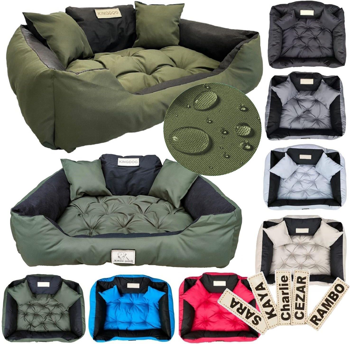 Wytrzymałe WODOODPORNE legowisko dla psa KINGDOG w kolorze ciemnozielonym, PERSONALIZOWANE imieniem pupila! Rozmiar: „XXL” Kraj pochodzenia: POLSKA Wymiar legowiska: 130 x 105 Wymiar wewnętrzny: 115 x 90 Tolerancja wymiarów: 5% Materiał: Codura nieprzemakalna PVC – w kolorze legowiska Tkanina łatwa …