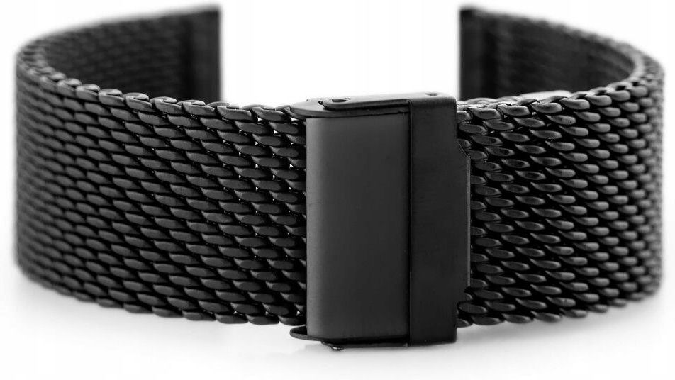 WYMIARY szerokość przy mocowaniu: 20mm szerokość bransolety: 20mm długość całkowita po rozłożeniu: 200 mm maksymalny obwód: ok. 16 cm (do obwodu należy doliczyć rozmiary koperty docelowego zegarka) OPIS Stalowa bransoletka do zegarka typu 'siatka' wysokiej jakości w kolorze czarnym Regulowane zapięcie - zakres regulacji ok. 5,2cm