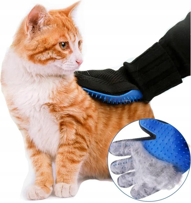 RĘKAWICA SZCZOTKA DO CZESANIA SIERŚCI PSA KOTA PAGMIL RĘKAWICA SZCZOTKA DO CZESANIA SIERŚCI PSA KOTA Podczas zwykłego głaskania zwierzaka jego skóra jest masowana aż 180 wypustki co pobudza krążenie krwi a jednocześnie zbierają one utraconą sierść. Zwierzaki uwielbiają głaskanie, dlatego zabieg masowania jest dla nich niezwykle przyjemny. Pupil się relaksuje, jest zadowolony, a Ty usuwasz zbędną sierść. Specyfikacja Rękawica posiada aż 180 wypustek do masowania oraz zbierania sierści. Zabieg jest bardzo przyjemny dla pupila masuje i stymuluje krążenie krwi. Dzięki oddychającemu materiałowi z siatki rękawica jest komfortowa w użyciu. Odprężenie i relaks dla Twojego czworonoga. Rozmiar rękawicy uniwersalny. Cena dotyczy jednej sztuki rękawicy Stan: nowy Kolor: niebiesko-czarny Ręka: LEWA Wymiary: 25cm x 15cm Rozmiar: uniwersalny Ilość wypustek na rękawicy: 180 Stan: Nowy EAN (GTIN): 5905884521595 Kod producenta: RĘKAWICA SZCZOTKA DO CZESANIA Marka: PAGMIL Nazwa handlowa: RĘKAWICA DO CZESANIA PSÓW I KOTÓW Przeznaczenie: dla psa|dla kota Włosie: kauczuk Rodzaj: rękawica Rodzaj sierści: sierść krótka|sierść długa|sierść szorstkowłosa|sierść wełnista Cechy dodatkowe: miękka szczotka|uniwersalna szczotka Waga produktu z opakowaniem jednostkowym: 0.1
