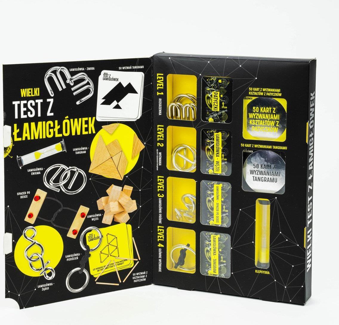 WIELKI TEST ZE 100 ŁAMIGŁÓWEK 8+ Wielki Test ze 100 Łamigłówek to wyjątkowy zestaw dla miłośników wyzwań logicznych. Zawiera różnorodne układanki i zadania, które rozwijają spostrzegawczość, koncentrację oraz logiczne myślenie. Doskonała rozrywka dla dzieci od 8. roku życia, młodzieży i dorosłych. Najważniejsze elementy zestawu - 4 metalowe układanki – w czterech stopniach trudności. - 2 drewniane łamigłówki – klasyczne „węzeł” i „spacer po desce”. - Tangram – + 50 kart z wyzwaniami do ułożenia. - Patyczki – + 50 kart z zadaniami do rozwiązania. - Klepsydra – do odmierzania czasu i tworzenia dodatkowych emocji w grze. Dlaczego warto? - 100 wyzwań logicznych – gwarantują godziny kreatywnej zabawy. - Ćwiczy pamięć, koncentrację i myślenie strategiczne. - Uniwersalny zestaw – idealny do zabawy w pojedynkę lub w grupie. - Świetny pomysł na prezent – dla dzieci i dorosłych ceniących gry logiczne. Specyfikacja - Wiek: 8+ - Zawartość: 4 metalowe układanki, 2 drewniane łamigłówki, tangram + 50 kart, patyczki + 50 kart, klepsydra - Rodzaj zabawy: łamigłówki, logiczne układanki, gry umysłowe Wielki Test ze 100 Łamigłówek to zestaw, który nie tylko bawi, ale i uczy. Idealny do rozwijania umiejętności logicznych i kreatywnego myślenia w każdym wieku.