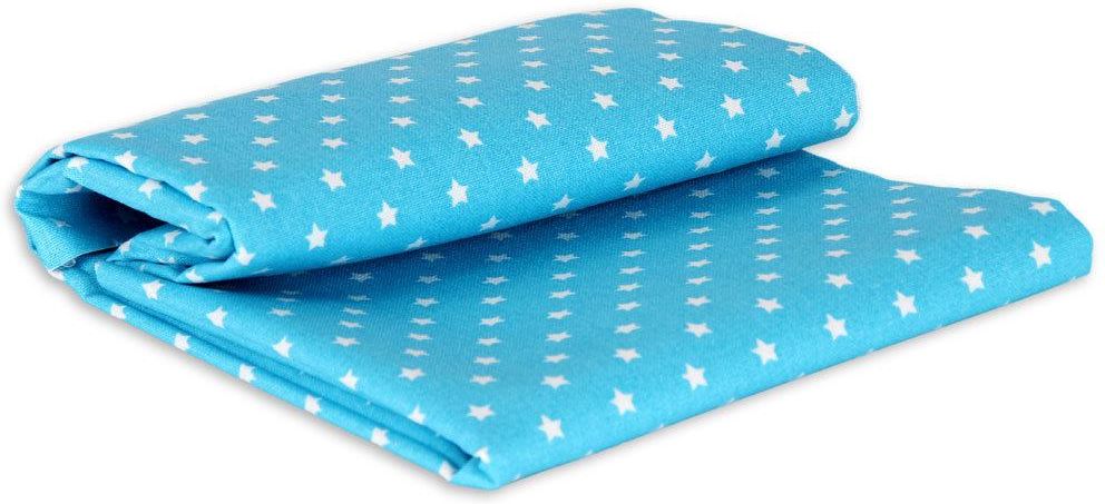 - tkanina do szycia - 100% bawełny - wzór: jasnoniebieskie gwiazdki - wymiary: 50 x 55 cm - wysoka jakość materiału - tkanina idealna do szycia metodą patchwork, a także do poduszek, pokrowców, kołder, dekoracji, ubrań