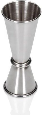 Miarka barmańska japońska dwustronna "jigger" Niezbędnym wyposażeniem każdego baru, klubu nocnego czy dyskoteki jest miarka barmańska do alkoholu. Pozwala na dokładne i wygodne odmierzanie porcji alkoholu oraz dodatków wykorzystywanych podczas przygotowywania różnego rodzaju drinków czy deserów. W zależności od potrzeb miarka posiada pojemność 30/60ml pozwala dopasować je do indywidualnych potrzeb lokalu czy preferencji barmana. Wykonanie ze stali nierdzewnej zapewnia wytrzymałość oraz ułatwia czyszczenie. Pojemność: 30/60 ml Wysokość: 112 mm Kar76