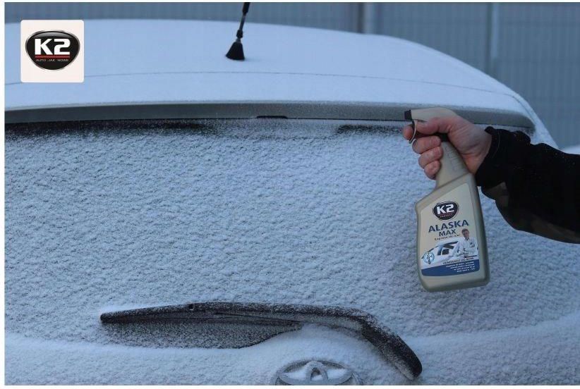 K2 ALASKA MAX - odmrażacz do szyb 700 ml z atomizerem K2 ALASKA MAX to ultra-skuteczny spray do odmrażania szyb i lusterek samochodowych, idealny na zimowe poranki. Produkt o pojemności 700 ml zapewnia skuteczne działanie nawet w ekstremalnych warunkach, do -70°C, skutecznie usuwając szron oraz grubsze warstwy lodu bez ryzyka uszkodzenia powierzchni. K2 ALASKA MAX to niezawodny towarzysz zimowych podróży, który ułatwi usuwanie lodu, zapewniając doskonałą widoczność i bezpieczeństwo na drodze. Korzyści i cechy produktu Skuteczne działanie w ekstremalnych temperaturach – K2 ALASKA MAX działa efektywnie nawet przy temperaturach do -70°C, skutecznie rozpuszczając szron i lód. Bezpieczny dla powierzchni – Produkt jest całkowicie bezpieczny dla lakieru, gumy oraz plastiku, nie powodując zarysowań ani uszkodzeń. Wygodny atomizer – Dzięki atomizerowi, odmrażacz jest łatwy do aplikacji, nawet podczas zimowych warunków, bez konieczności zdejmowania rękawiczek. Nanocząsteczki ochronne – Zawarte w formule nanocząsteczki sprawiają, że po zastosowaniu odmrażacza, kolejny lód będzie łatwiejszy do usunięcia z powierzchni szyby. Działanie na wycieraczki – Spray skutecznie pomaga w odklejaniu przymarzniętych wycieraczek, zapobiegając ich dalszemu zamarzaniu. Gładka powierzchnia bez zarysowań – Po odmrożeniu powierzchnia szyby pozostaje gładka i bez zarysowań, co zapewnia doskonałą widoczność. Sposób użycia Rozpylić K2 ALASKA MAX na oszronioną lub zamarzniętą powierzchnię szyby. Po roztopieniu lodu, wytrzeć szybę do sucha ściereczką lub wycieraczkami. W przypadku grubszej warstwy lodu, użyj skrobaka do usunięcia pozostałości.