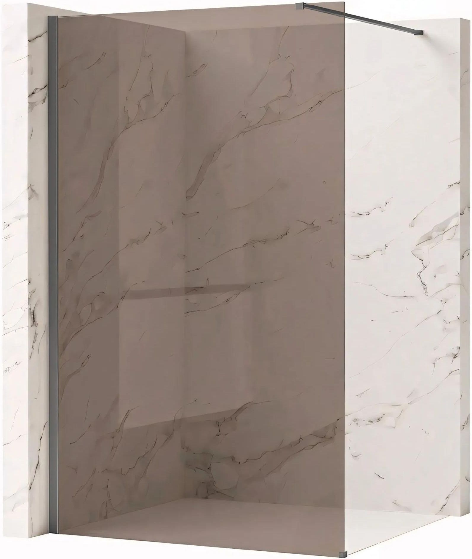 Szukasz rozwiązania, które nada Twojej łazience unikalnego, designerskiego charakteru? Wybierz ściankę prysznicową walk-in Rea Flexi w oryginalnym zestawieniu: szkło w odcieniu Przydymiony Brąz oraz profile w kolorze Tytanowy Szczotkowany. To kompozycja, która łączy ciepło przyciemnianej szyby z surową elegancją metalicznego, matowego wykończenia. Wykonana z solidnego szkła hartowanego 8 mm, konstrukcja gwarantuje stabilność i bezpieczeństwo.Szkło hartowane 8 mm (Przydymiony Brąz) – wytrzymała tafla o eleganckim, brązowym zabarwieniu, która wprowadza do wnętrza przytulny klimat i zapewnia poczucie prywatności.Profil aluminiowy Tytanowy Szczotkowany – wyjątkowe, matowe wykończenie w odcieniu tytanu, które stanowi nowoczesną i szlachetną alternatywę dla klasycznego chromu.Powłoka Easy Clean – technologia ułatwiająca utrzymanie czystości poprzez odpychanie wody i ograniczenie osadzania się kamienia.Wspornik 120 cm z możliwością przycięcia – ramię stabilizujące w kolorze tytanowym, które można swobodnie dociąć, dostosowując je do szerokości strefy prysznicowej.Uniwersalny montaż – elastyczność instalacji: ściankę można zamontować zarówno jako prawą, jak i lewą, na brodziku lub bezpośrednio na posadzce.Konstrukcja Walk-In – przestronne wejście bez barier, które jest niezwykle wygodne i podkreśla minimalistyczny styl łazienki.Ścianka prysznicowa Rea Flexi to doskonała propozycja dla miłośników nieoczywistych rozwiązań. Brązowa barwa szkła w parze ze szczotkowanym tytanem tworzy spójną, niezwykle efektowną całość. Solidne wykonanie i powłoka ochronna sprawiają, że jest to inwestycja w komfort i wyrafinowany styl na długie lata.