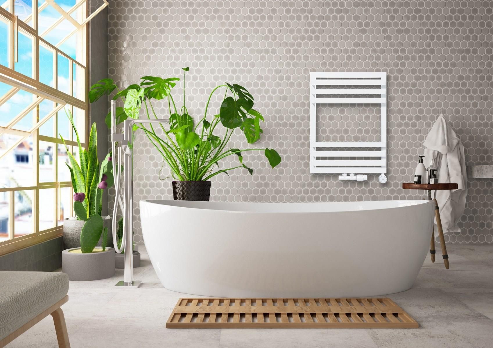 Dekoracyjny grzejnik łazienkowy AG Modern L-BONAGrzejnik łazienkowy L-BONA wyróżnia się klasyczną bryłą, którą uzupełniono symetrycznymi profilami poziomymi, które umieszczono po trzy na dole i na górze grzejnika. Jego środek pozostaje pusty, dzięki czemu prezentowany kaloryfer doskonale sprawdza się jako suszarka do ręczników.Zastosowanie rur o przekroju prostokąta i kwadratu pozwoliło producentowi uzyskać nowoczesną i lżejszą bryłę, która doskonale sprawdzi się w minimalistycznych wnętrzach. Grzejnik L-BONA wykonano z wysokiej jakości stali, którą pokryto proszkowo farbą. Kaloryfer dostępny jest w pięciu odcieniach, dzięki czemu każdy użytkownik jest w stanie dopasować go do designu swojego pokoju kąpielowego.