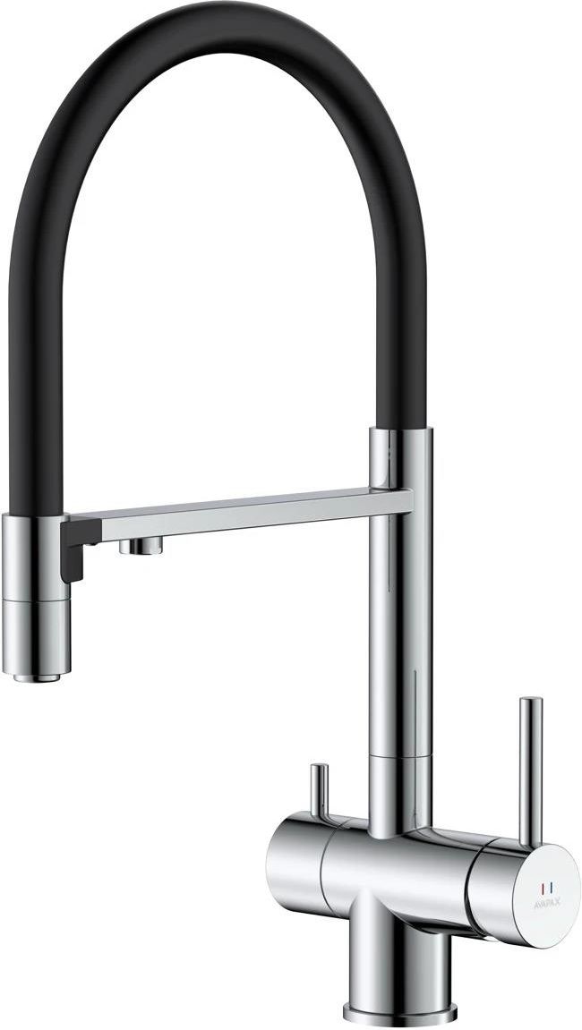 Bateria kuchenna stojąca z elastyczną wylewką i podłączeniem do filtra wody, dwa rodzaje strumienia (kod: ABDA7517F1) – kolekcja DAPUR marki AVAPAX. Nowoczesna, industrialna i minimalistyczna w charakterze, o cylindrycznej, proporcjonalnej formie i satynowo-szczotkowanej powierzchni. …