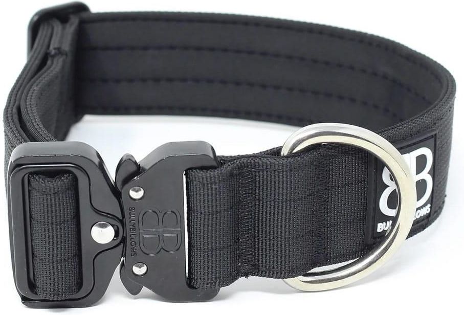 4cm Combat® Collar BULLYBILLOWS obroża dla psa z klamrą czarna Obroża bojowa BullyBillows jest wyposażona w potrójnie szyty nylon, bezpieczną 6-milimetrową pętlę D ze stali nierdzewnej oraz specjalnie wykonany klips do szybkiego odpinania i zapinania. Obszyta wygodnym neoprenem wewnątrz obroży dla maksymalnego komfortu. Nadaje się do codziennego użytku dla każdej rasy oraz jako profesjonalna obroża dla psów bojowych w policji, wojsku i ochronie. Wyprodukowano w Wielkiej Brytanii. Rozmiary: M - 35cm - 54cm obwód szyi L - 43cm -72cm obwód szyi