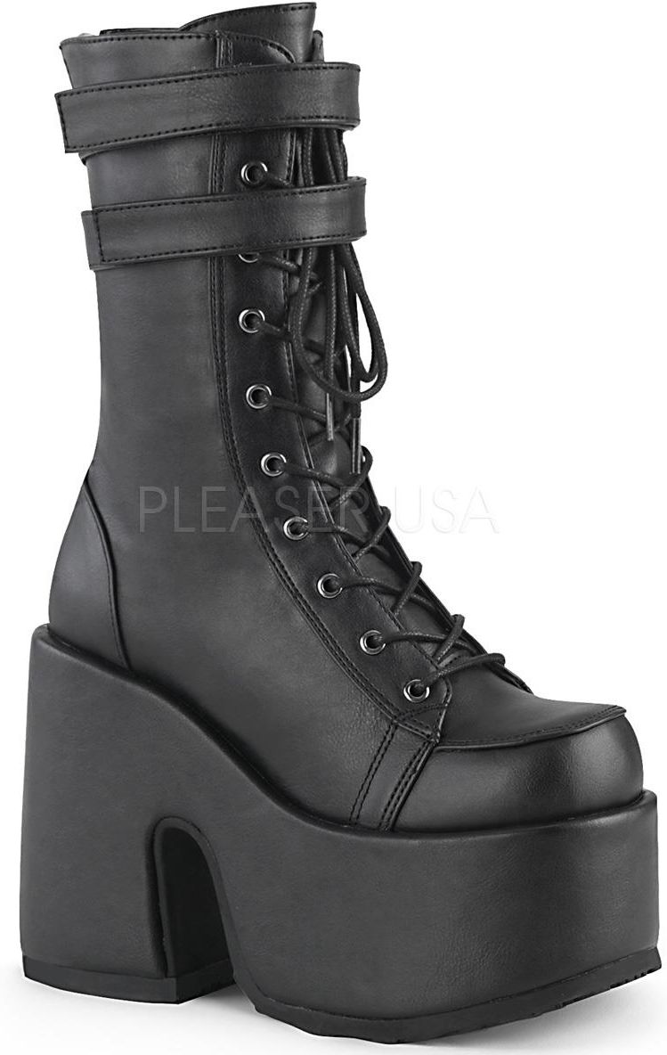5 (127mm) Chunky Heel, 3 (75mm) Platform Lace-Up Mid-Calf Boot Featuring Double Hook N' Loop Straps, Back Zip Closure