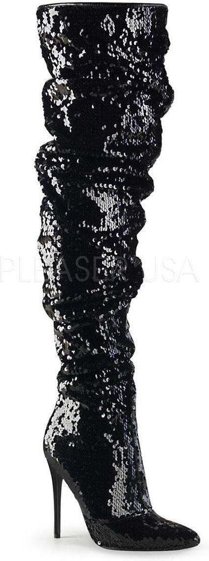 Marszczone obcasy Pleaser Courtly-3011 Błyszczące, marszczone i jedyne w swoim rodzaju, to właśnie wyjątkowe obcasy amerykańskiej marki Pleaser - Courtly-3011! Idealne do exotic i pole dance, w niezwykły sposób podkreślą każdą Twoją choreografię, sekwencję, czy florwork i dodadzą Ci seksapilu oraz pewności siebie! Obcasy Courtly-3011 - dlaczego warto? Model Courtly-3011 to obcasy, które olśniewają swoim nieprzeciętnym designem, ale także imponują doskonałą jakością wykonania. Obcas o wysokości niemal 13 centymetrów wydłuża nogi, z kolei długa, sięgająca kolan cholewka optycznie je wysmukla. Buty w gustowny sposób podkreślają atuty kobiecej figury, a jednocześnie gwarantują pełen komfort i wysoką pewność chodzenia. Z butami Pleaser Courtly-3011 każdy kolejny krok to czysta przyjemność! Cała powierzchnia butów pokryta została delikatnie połyskującymi, brokatowymi cekinami w kolorze morskim lub czarnym. Buty dostępne są w naszej ofercie w rozmiarach od 36 do 42.