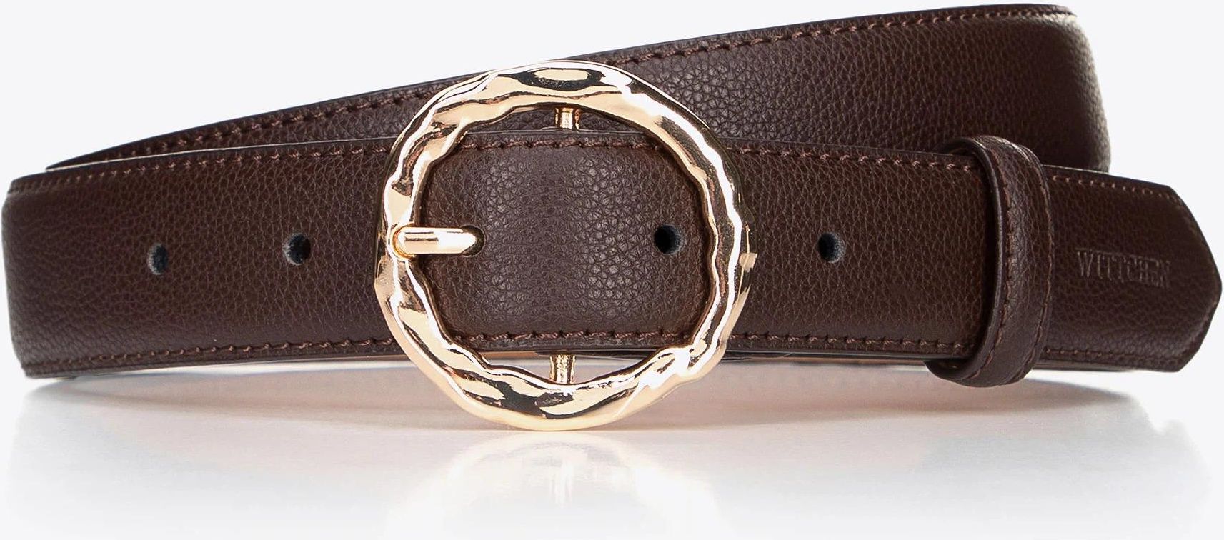 Damski pasek ze skóry naturalnej z błyszczącą klamrą brązowy Góra Kalwaria
