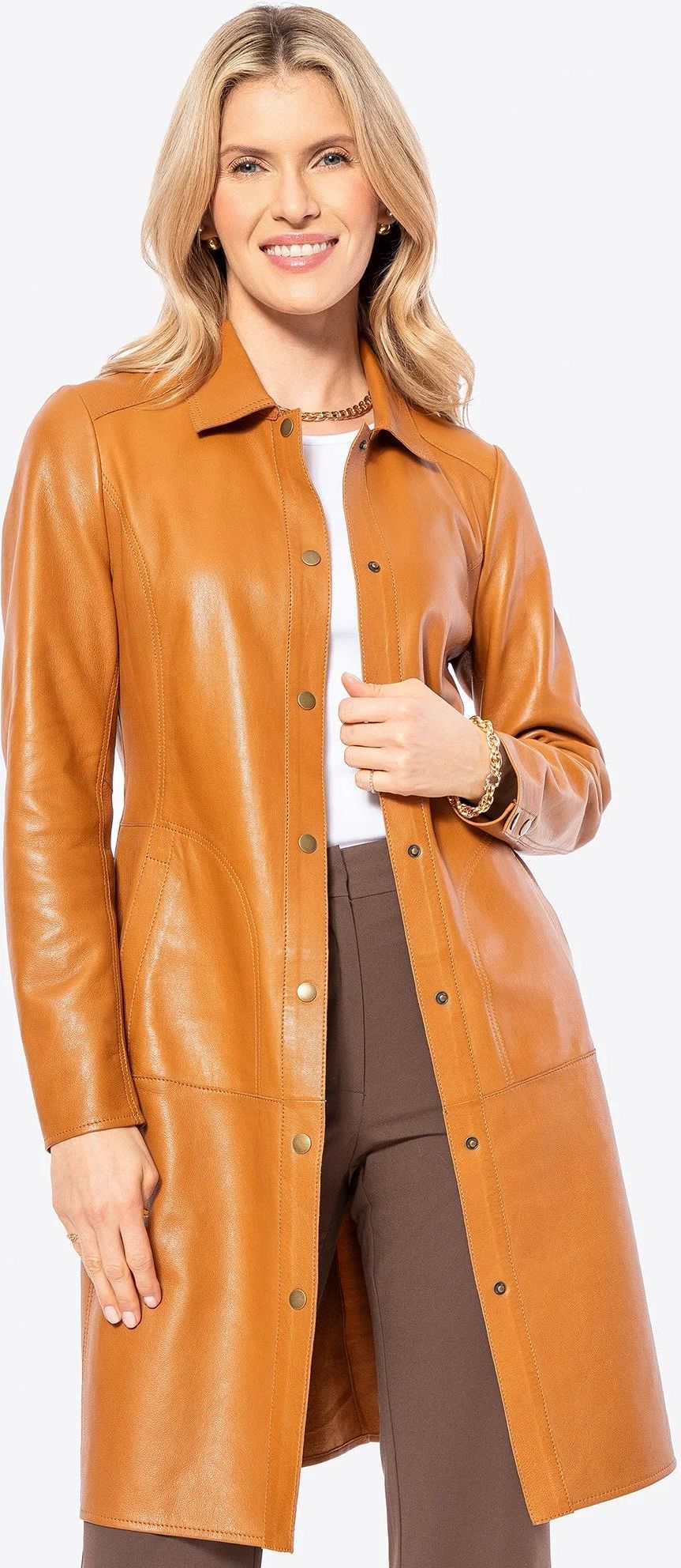 Bardzo ładny skórzany płaszcz. Piękny kolor i zgrabny fason. Wiedziałam, że nie ma podszewki ale bardzo by się przydała. Taki mały minusik. Z zakupu jestem bardzo zadowolona. Polecam.