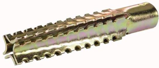 "CHARAKTERYSTYKA: Kołek wykonany ze stali ocynkowanej galwanicznie. Przeznaczony do lekkich zamocowań, szczególnie w gazobetonie także w innych typach podłoża. Montaż w gazobetonie przy użyciu młotka, bez wiercenia otworu. W pełnych materiałach budowlanych przed wbiciem kołka należy wywiercić otwór odpowiednim wiertłem. Można stosować do mocowania wkręty do drewna, metryczne lub blachowkręty. MATERIAŁ - stal cynkowana galwanicznie, - grubość powłoki min. 8μm "